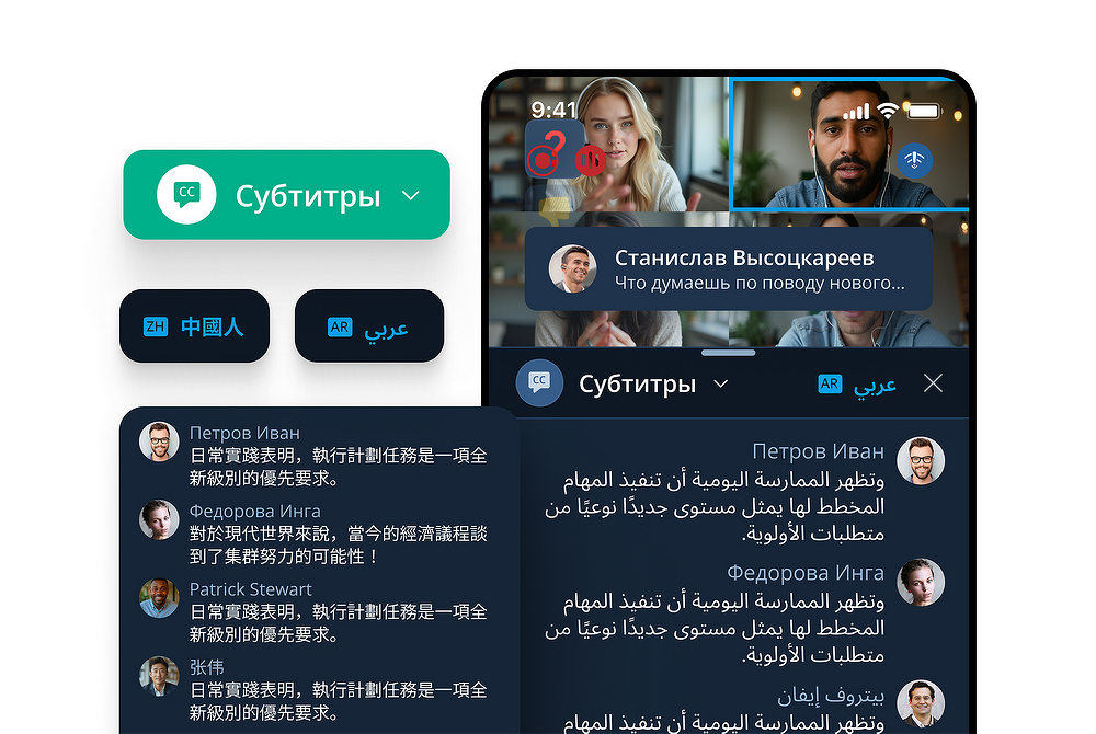 Важным шагом для компаний с международной деятельностью стала расширенная поддержка системы распознавания речи IVA Terra. Решение поддерживает 23 языка, в т.ч. английский, китайский, арабский, испанский, французский и обеспечивает автоматическое создание субтитров и стенограмм в реальном времени с учетом особенностей письменности. Файлы стенограмм автоматически сохраняются в разделе «Файлы» мероприятия.